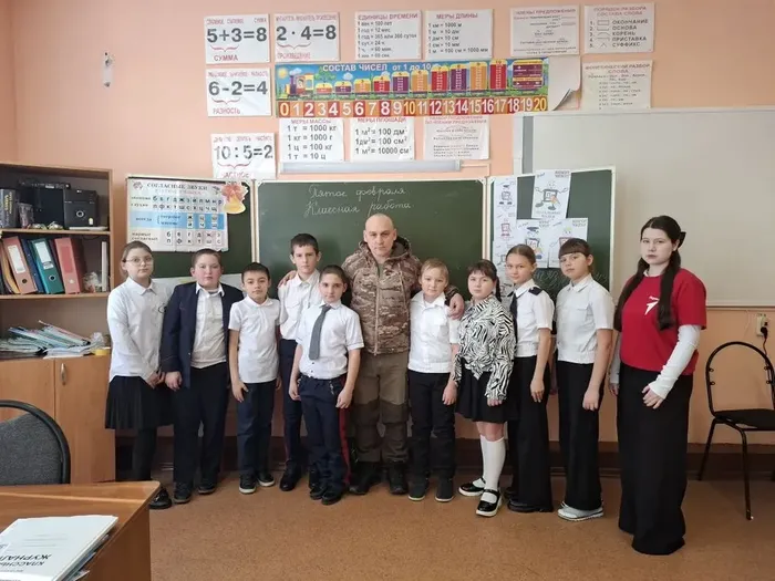 В рамках Всероссийской акции «Наши защитники Отечества» в школе 4 им. С.Ю. Полякова прошла «Классная встреча с участником СВО».