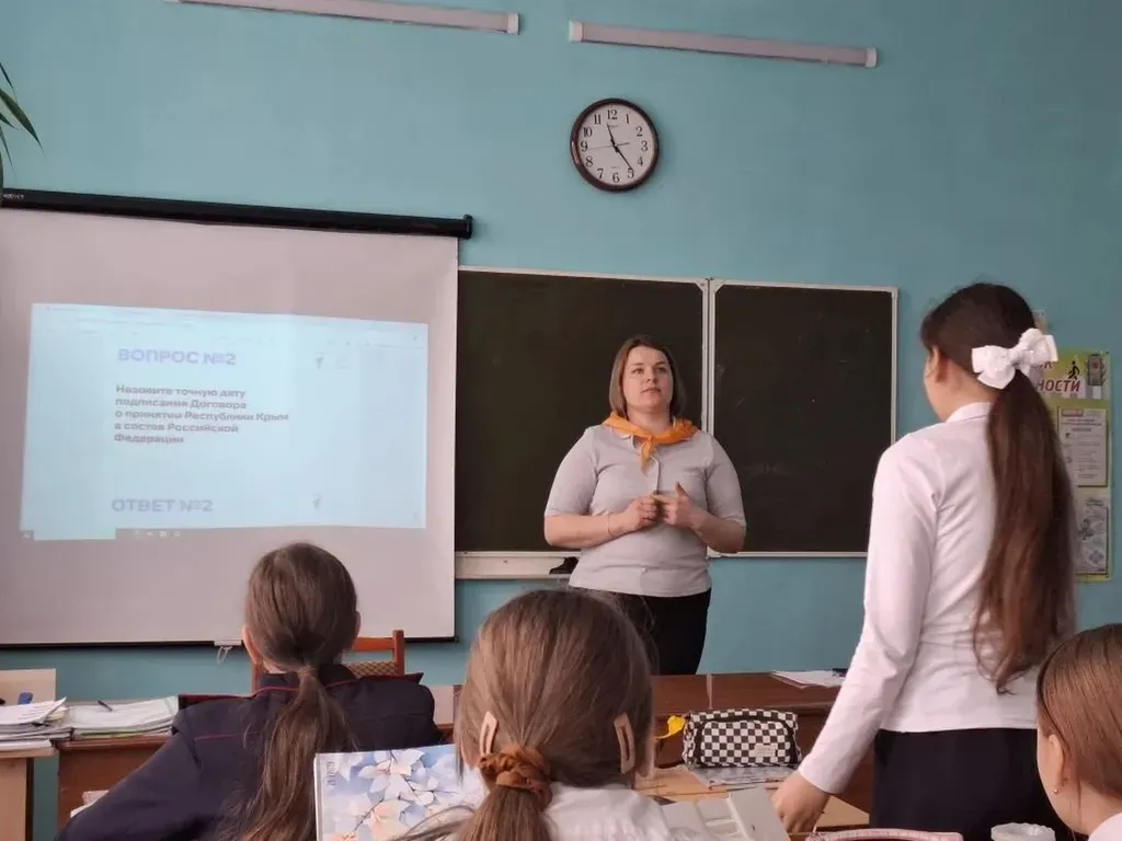 Отчёт о проведении мероприятий «Воссоединение Крыма с Россией». Крым воссоединился с великой державой – Россией! Теперь Крым и Россия навсегда едины. В нашем календаре навсегда добавилась еще одна праздничная дата – 18 марта, день воссоединения Крыма с Россией. В этот день для крымчан, как большой праздник – « Крымская весна». Не случайно это событие произошло весной, когда пробуждается природа, зарождается новая жизнь, а для Крыма наступил новый этап, открылась новая страничка в истории полуострова – радостная и счастливая. С целью формирования у детей патриотических чувств, уважения к истории, развития интереса к историческим событиям, произошедшим в Крыму с 13 по 17 марта в МБОУ СОШ №4 им. С. Ю. Полякова прошли тематические дни, посвященные Дню воссоединения Крыма с Россией. Детям была представлена презентация «Крым и Россия. Мы вместе». Они с интересом слушали рассказ воспитателей об истории Крыма, о событиях, произошедших в марте 2014 года, о достопримечательностях и природе полуострова. На познавательных занятиях: «Путешествие по истории», «Крым – это Россия» дети знакомились с символикой Крыма и России, изучали флаг и герб, слушали гимн Российской Федерации и Крыма. Ребята узнали об историческом прошлом Крымского полуострова, о народах, проживающих в Крыму в настоящее время, об их культурном наследии. А закрепили свои знания в небольшой викторине – «Что мы знаем о Крыме». Дети с удовольствием выполнили рисунки на тему: «Крым и Россия вместе!». День воссоединения Крыма с Россией – это праздник национального самосознания, национальной и государственной гордости, объединивший миллионы людей под символом исторической правды, мужественности и братства. На территории Республики Крым этот день является праздничным и выходным. Годовщина Крымской весны всегда широкого отмечается на территории полуострова. Праздничные мероприятия стараются устроить во всех крупных городах. На центральных площадях ставят концертные площадки, устраивают ярмарки и выставки. «Мы русские и этим гордимся!», «Крым! Весна! Россия!» – именно такие лозунги звучат в этот день! День воссоединения Крыма с Россией отмечается не только на полуострове, но и серией митингов и шествий по всей нашей стране.