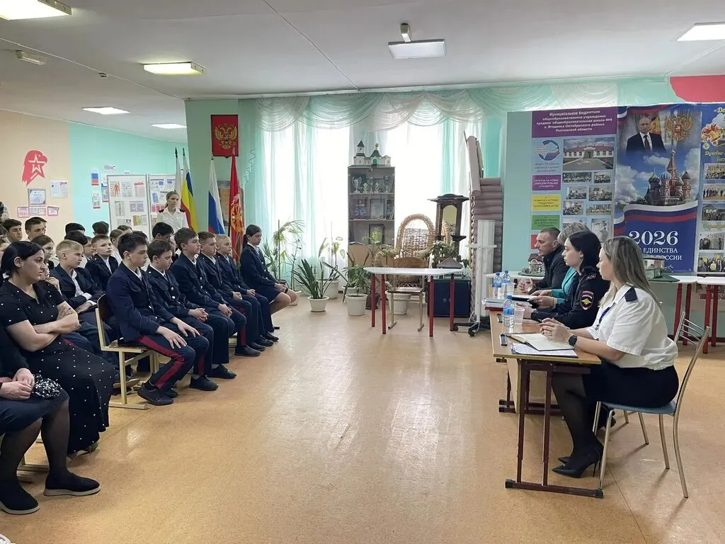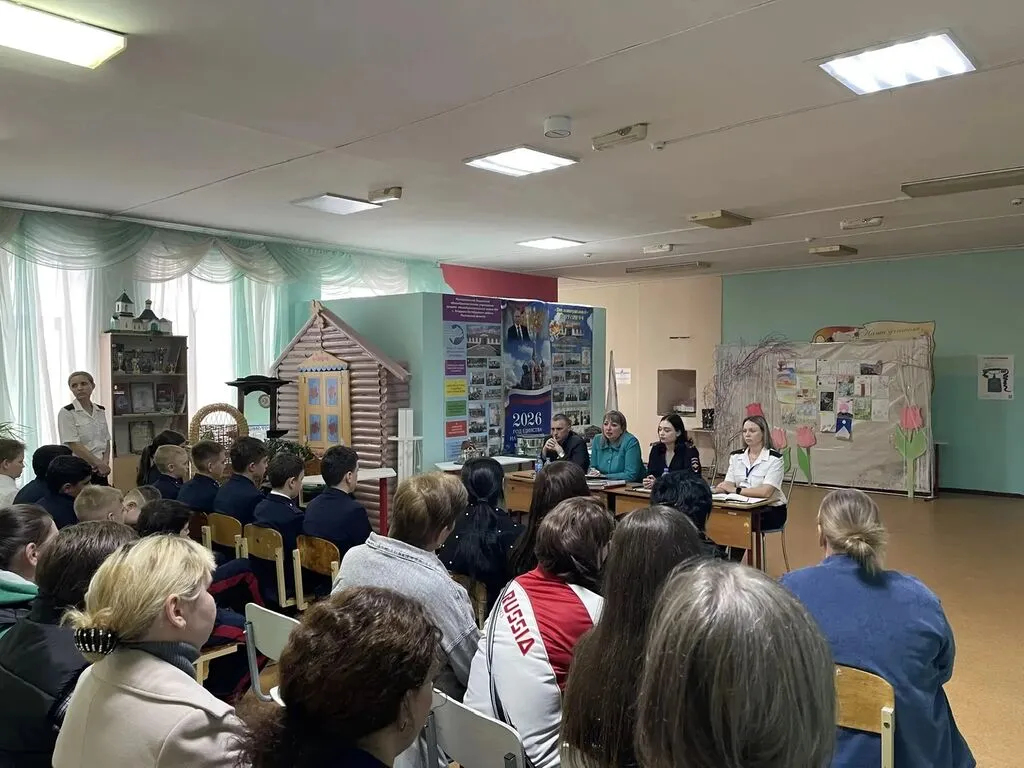 09.04.2026 г. в МБОУ СОШ №4 им. С. Ю. Полякова совместно с начальником отдела образования Администрации Октябрьского района Тараско Анной Александровной, инспектором ПДН ОП № 3 Голопяткиной Анастасией Андреевной, ведущим специалистом по делам несовершеннолетних и защите их прав Администрации Октябрьского района Николаенко Иваном Сергеевичем проведен "День Большой профилактики". Тема общешкольного родительского собрания: "Взаимодействие школы, родителей, органов ПДН и ЗП в вопросах профилактики правонарушений несовершеннолетних". Цель: предупреждение правонарушений и преступлений со стороны несовершеннолетних, оказание им социальной и правовой помощи, пропаганда здорового образа жизни и безопасного поведения на дорогах. Профилактическая работа в этот день проводилась согласно плану отдела образования Администрации Октябрьского района на основе взаимодействия со специалистами системы профилактики. Иван Сергеевич провел беседу о полезных и вредных привычках, рассказал о безопасности в сети интернет. Анна Александровна напомнила о запрете нахождения детей без сопровождения законных представителей после 22.00, о безопасности дорожного движения и профилактике ДТП. Анастасия Андреевна провела беседу с ребятами на тему: «Профилактика табакокурения, алкоголизма, наркомании в подростковой среде (профилактика употребления ПАВ)». Ребята узнали о вреде и последствиях употребления психотропных веществ, о никотиновой зависимости, об опасности подростковой наркотической зависимости. Педагог-психолог Скляр О. Ю. обсудила вопросы безопасности детей и гибели несовершеннолетних от внешних причин. В конце родительского собрания всем присутствующим раздали памятки для детей и родителей.