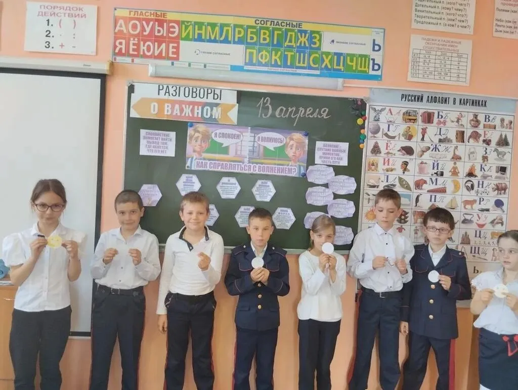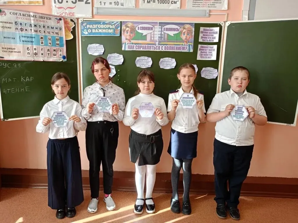 "Разговоры о важном" 13 апреля 2026 года в рамках цикла внеурочных занятий «Разговоры о важном» прошел единый урок на тему «Как справиться с волнением?». Тема актуальна, так как волнение — естественное состояние человека, которое возникает перед важными событиями: экзаменами, выступлениями, собеседованиями и др.. Цель занятия — помочь учащимся осмыслить природу волнения, развить навыки самонаблюдения и эмоционального интеллекта, освоить техники саморегуляции для применения в стрессовых ситуациях.